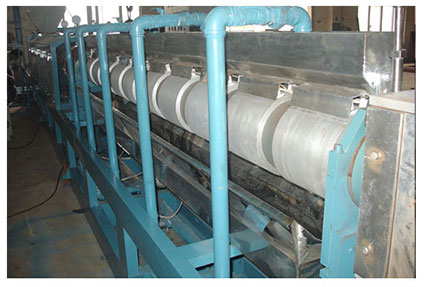 1、螺桿長徑比:55:1 2、螺桿、機筒材質:38CrMoAlA,滲氮處理,硬度HV900-1000。 3、電機功率:75Kw。(山東“孚日”) 4、減速方式:擠出機專用,硬齒面減速箱(常州“國茂”)。 5、傳動方式:皮帶輪傳動。 6、調速方式:變頻調速(深圳“四方”)。 7、加熱方式:前段不銹鋼發(fā)熱圈,后段鑄鋁發(fā)熱圈。 8、冷卻方式:內循環(huán)水冷卻,電磁閥控制。 9、料斗配備:斷料報警裝置。 |